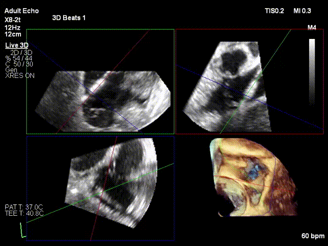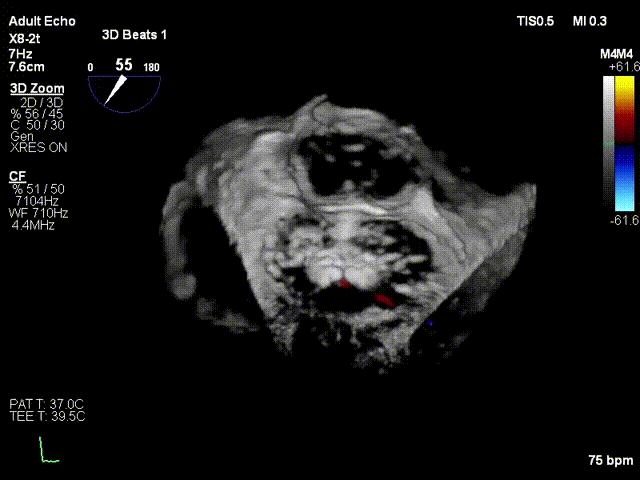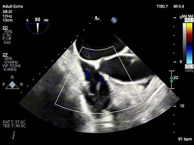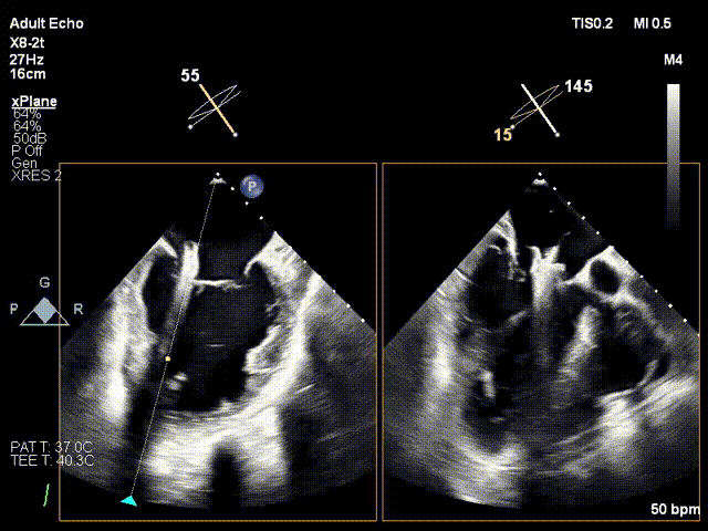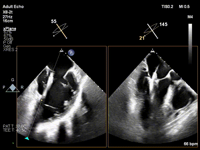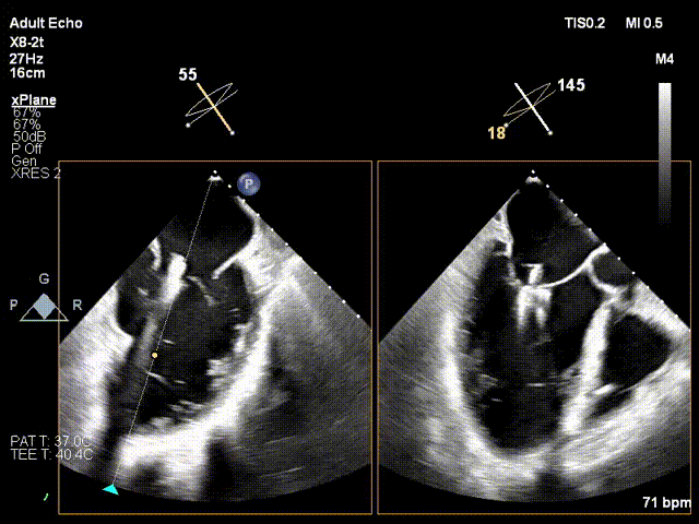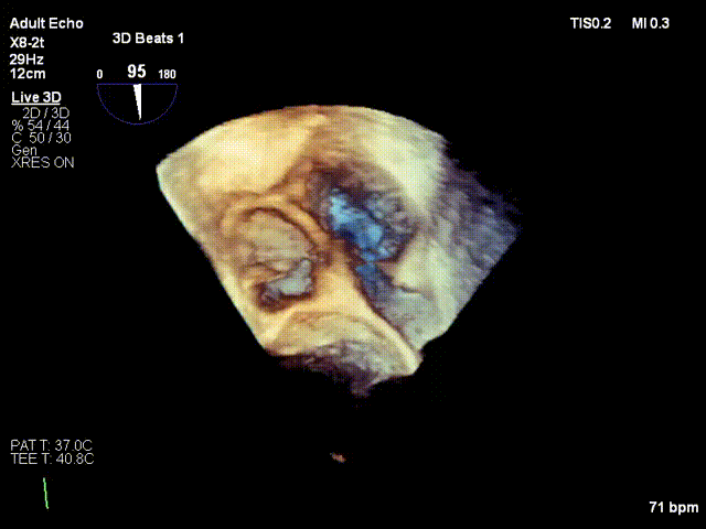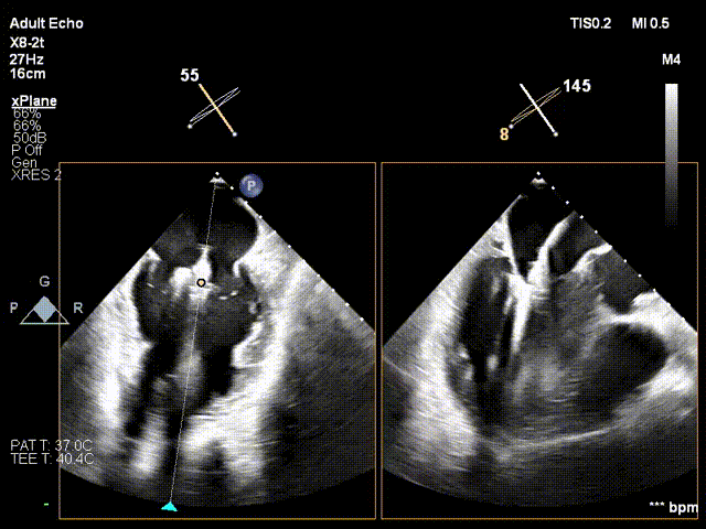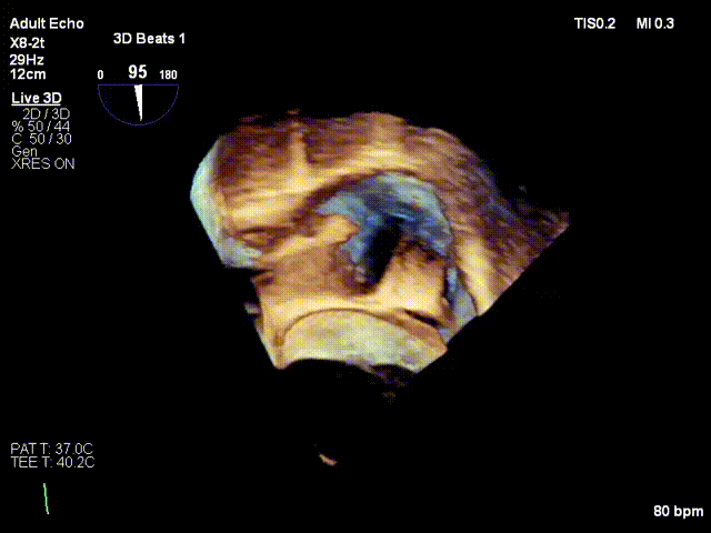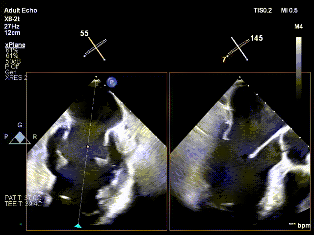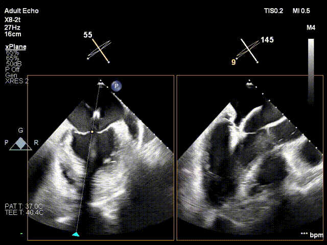 2. 超声引导下,第一套夹子到位,指向后瓣环处