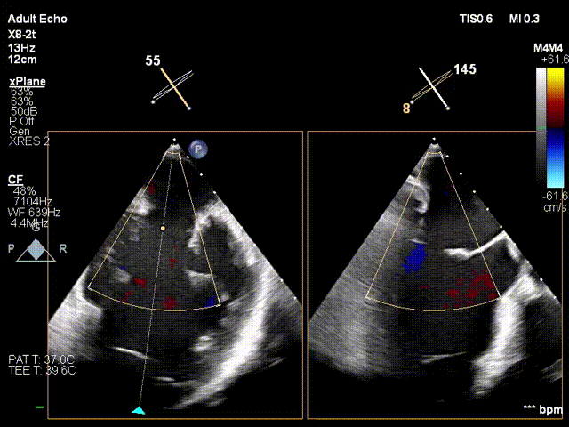 术前术后反流对比:三尖瓣反流4+下降至1+