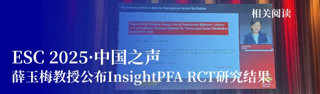 此次研究结果的公布是中国PFA循证之路的高光时刻。研究由广东省人民医院领衔,联合全国13家顶尖中心共同开展,严格遵循国际金标准,将创新的纳秒级PFA技术与成熟的射频消融(RFA)技术进行头对头比较;采用严苛的随访方案,旨在以最高等级的循证证据,向全球学术界展示中国原创技术的卓越疗效与安全性。中国PFA研究也将在国际循证医学的“核心竞技场”中展现更多实力,为全球房颤治疗方案贡献“中国智慧”。