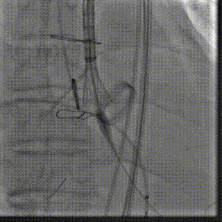 右侧股动脉为主入路, 预装ProStyle A ® AV32 主动脉瓣膜,使用20F大鞘,不预扩,建议最终理想释放位置0-瓣下2mm。