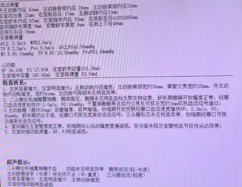 术前超声提示: 二尖搬位机械置换术后,功能未见明显异常,瓣周返流(轻-中度)
