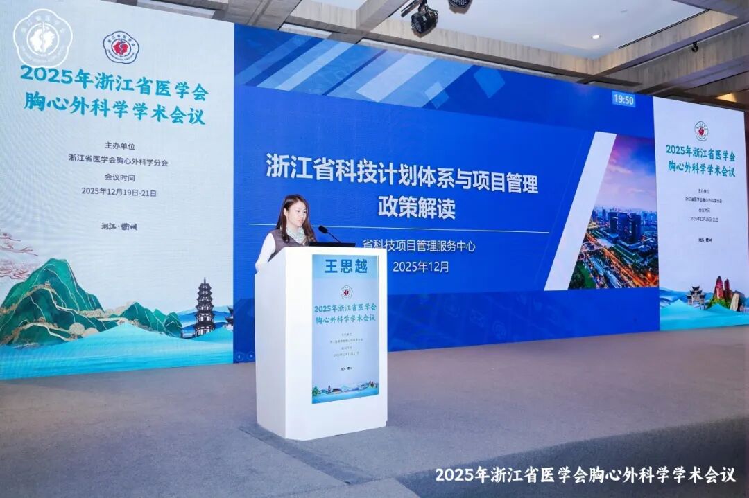 浙江省科技项目管理服务中心王思越主任深度解读《省科技计划体系介绍和课题项目管理要点》,为科研申报与管理提供清晰路径;上海交通大学医学院附属瑞金医院朱云鹏教授分享《中国心外科首篇Lancet的诞生:QVAS研究经验》,以高水平临床研究为例,剖析创新科研思路的形成过程;浙江省医学会胸心外科分会主任委员、浙江大学医学院附属第一医院马量教授带来《浙江省2024年心血管外科工作报告》,系统梳理年度数据、技术进展与现存挑战;浙江省医学会胸心外科分会副主任委员、浙江大学医学院附属第二医院范军强教授则聚焦《浙江省胸外科(普胸)现状与发展》,结合区域实际,探讨普胸外科技术升级与学科建设方向。