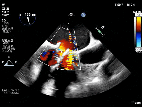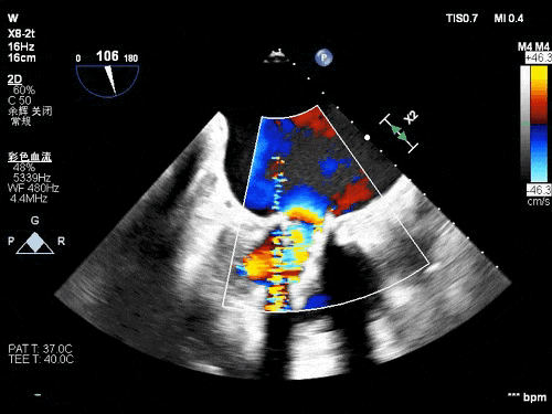 患者77岁老年女性,既往因风心病行二尖瓣生物瓣置换,入院后完善心脏超声等检查示二尖瓣生物瓣衰败并重度反流,PW测二尖前向血流速度Vmax:2.4m/s,PGmax:25mmHg。三尖瓣中度反流,心功能: 左室整体收缩功能尚好(LVEF:60%)。