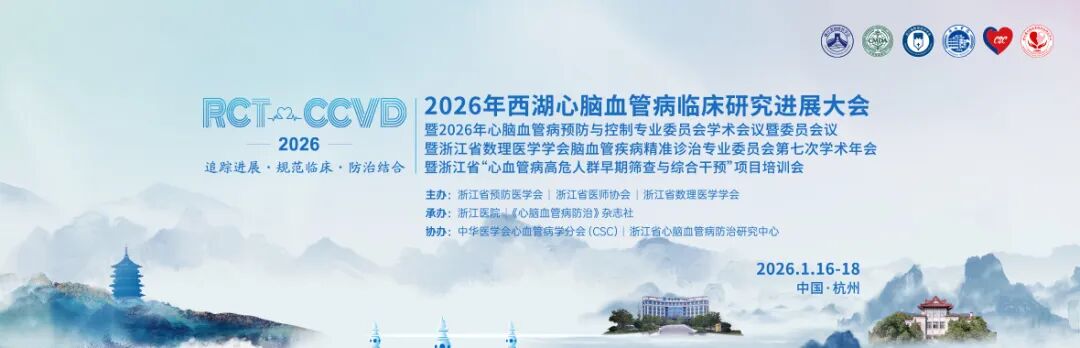 2026年1月17日,承载着十余年学术积淀的2026年西湖心脑血管病临床研究进展大会(RCT-CCVD2026)在杭州隆重开幕。本次大会由浙江省预防医学会、浙江省医师协会、浙江省数理医学学会联合主办,浙江医院与《心脑血管病防治》杂志社携手承办,中华医学会心血病学分会(CSC)、浙江省心脑血管病防治研究中心共同协办。大会秉持“追踪进展,规范临床,防治结合”的宗旨,为国内心脑血管同道搭建起跨学科交流的高端平台,聚力共探心脑血管病防治新策略和新路径。