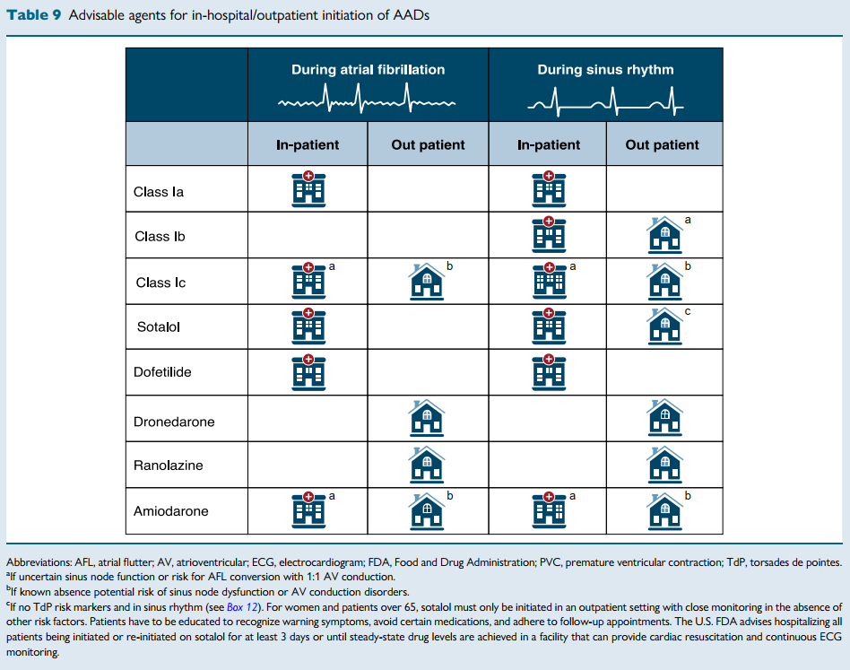 某些AAD(例如Ia类药物和多非利特)的起始用药仍需住院监测。