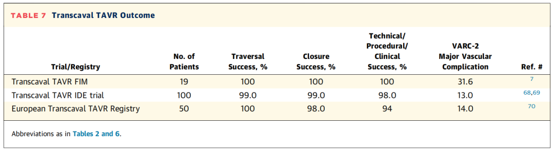 手术过程中,需确定正交投影角度,并同时进行主动脉造影和静脉造影以确认目标穿刺位点。在主动脉内的预定穿刺水平放置鹅颈圈套器。将包含导丝转换器内的硬导丝和支撑导管的穿刺系统,通过下腔静脉推进至穿刺位点。用钳子将导丝与单极电刀笔连接,通过电外科穿刺血管壁实现中点穿刺。一旦导丝进入主动脉并被圈套器捕获,需进行导丝交换,随后对穿刺通道进行连续扩张,并推进TAVR输送系统。TAVR手术完成后,使用镍钛合金封堵器关闭主动脉壁,最终通过主动脉造影确认腔静脉-主动脉通道密封良好。经腔静脉入路的潜在并发症主要包括出血和血管相关并发症。