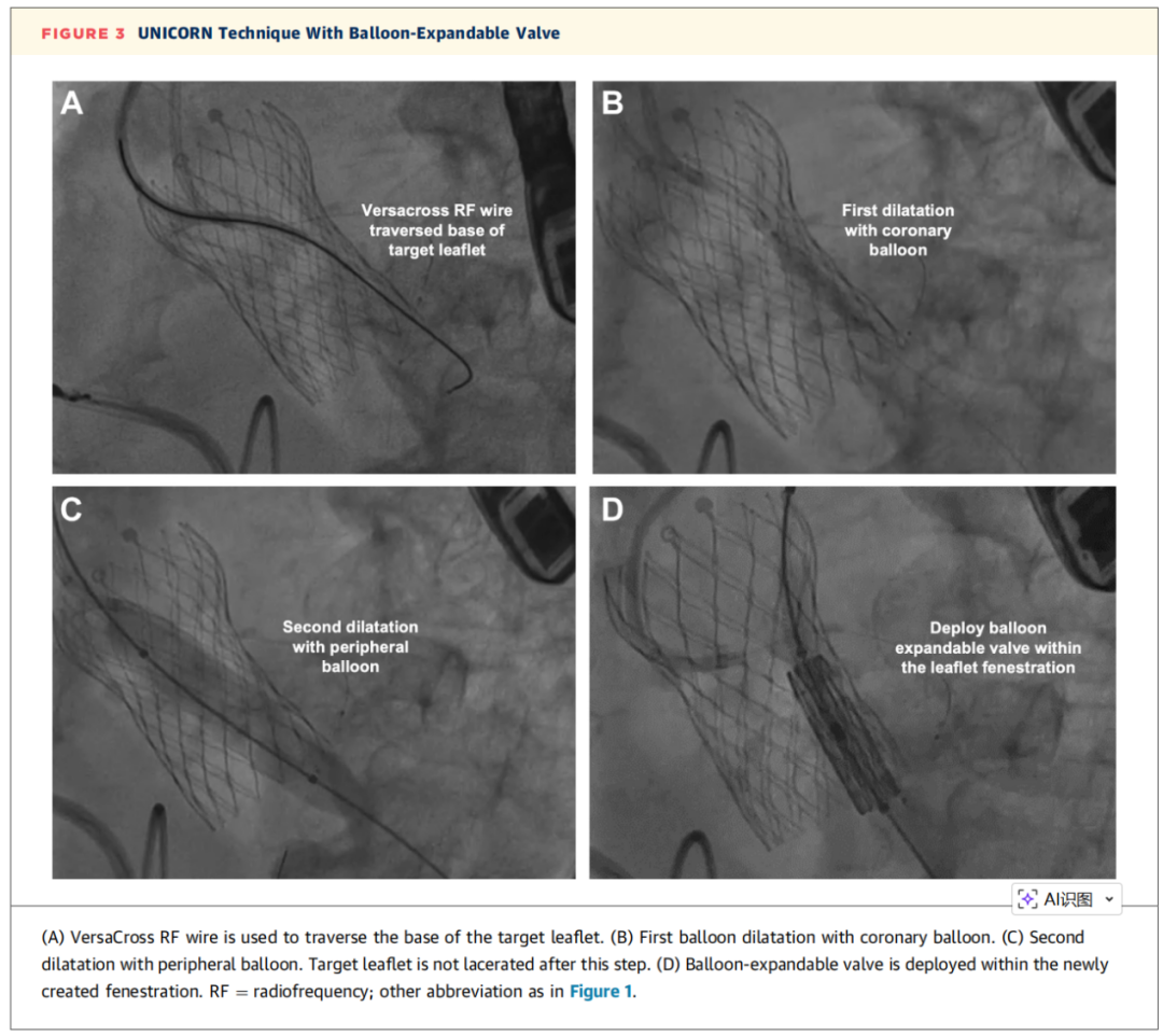 图4 UNICORN术与球囊扩张式瓣膜联合使用