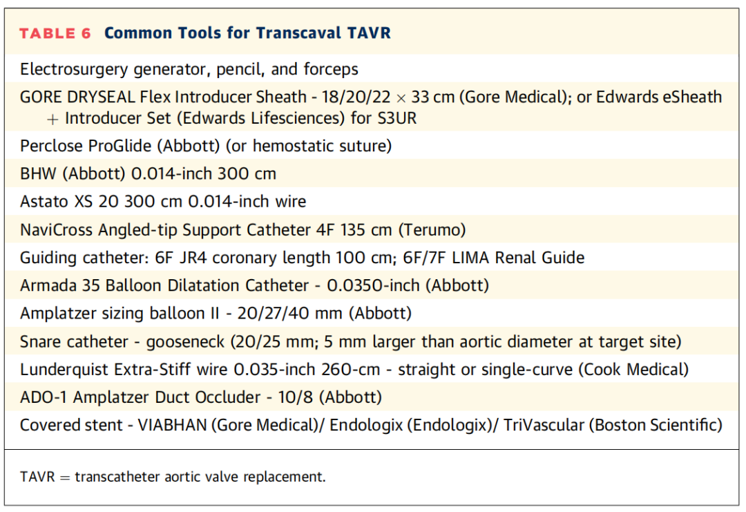 经腔静脉TAVR通常适用于没有合适股动脉入路进行TAVR手术的患者。术前CT对于判断手术可行性至关重要,可用于确定最佳的腔静脉-主动脉穿刺位点——该位点需主动脉钙化程度最低、两血管间距离最短,且需存在比计划鞘管尺寸至少大2mm的无钙化区域。穿刺位点还应距离主要动脉分支至少10mm,不应覆盖肠道供血动脉,并与股静脉保持安全距离。同时,制定应急策略也必不可少,例如需准备用于主动脉紧急填塞的球囊,通常为穿刺部位主动脉直径的120%(即超大号球囊)。