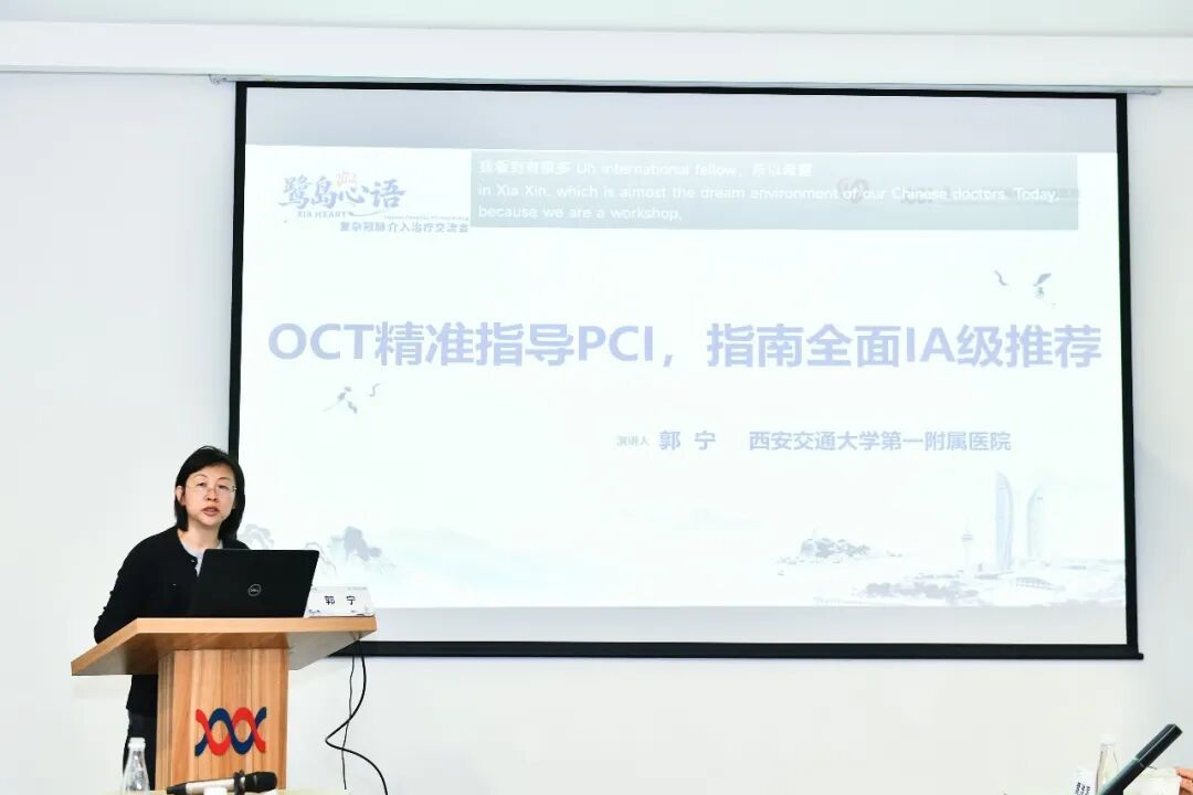 西安交通大学第一附属医院郭宁教授围绕“为什么用 OCT、何时用 OCT、如何用好 OCT”三个方面作了专题报告。她指出,随着循证医学证据的不断积累,腔内影像学在 PCI 中的重要性日益凸显,近年来 ESC、ACC 及我国 PCI 指南均不断提升 OCT/IVUS 在左主干病变、ISR 再狭窄等复杂和特殊病变中的推荐级别,充分体现了影像指导介入治疗的临床价值。在具体应用方面,郭宁教授重点介绍了 OCT 在 ACS、重度钙化病变及分叉病变中的优势,强调其在明确罪犯病变机制、评估钙化特征并指导预处理策略,以及预测分支受累风险方面具有不可替代的作用。同时提出当前应从“术后优化”转向“全流程影像指导”的理念,将 OCT 贯穿于术前病变评估、支架尺寸与落脚点选择及术后贴壁和膨胀评估全过程,从而进一步提升复杂冠脉病变介入治疗的安全性和长期疗效。