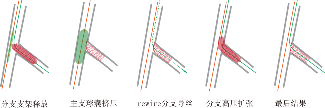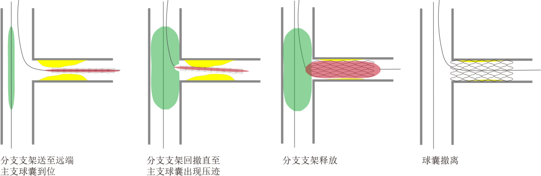 后续处理根据具体情况灵活进行,如主支球囊扩张、球囊对吻扩张、主支药物球囊扩张、甚至双支架植入等。