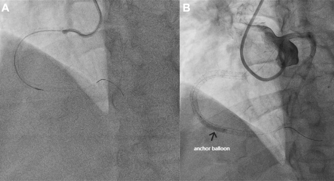 这个球囊提供了足够的支撑力,使得AL 0.75指引导管能够安全地从右冠开口脱出,并重新稳定地钩挂到左冠脉开口。