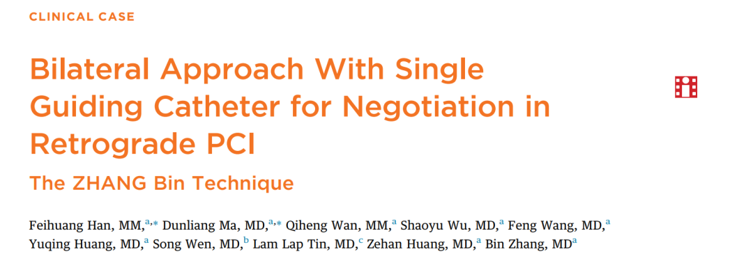 在慢性完全闭塞病变(CTO)的经皮冠状动脉介入治疗(PCI)领域,逆向技术已成为提高开通成功率的关键策略。然而,传统的逆向CTO-PCI通常需要双侧动脉入路(如同时穿刺桡动脉和股动脉)并置入两根指引导管,这一操作方式不仅增加了血管并发症的发生风险,还会给患者带来额外的不适感。能否仅通过单根指引导管、单一动脉入路完成逆向操作,在保证成功的同时最大化患者安全?近日,一项被称为“张斌技术(ZHANG Bin Technique)”的创新术式给出了肯定的答案,它代表了逆向CTO-PCI在简化流程、减少创伤方面的一次重要探索。
