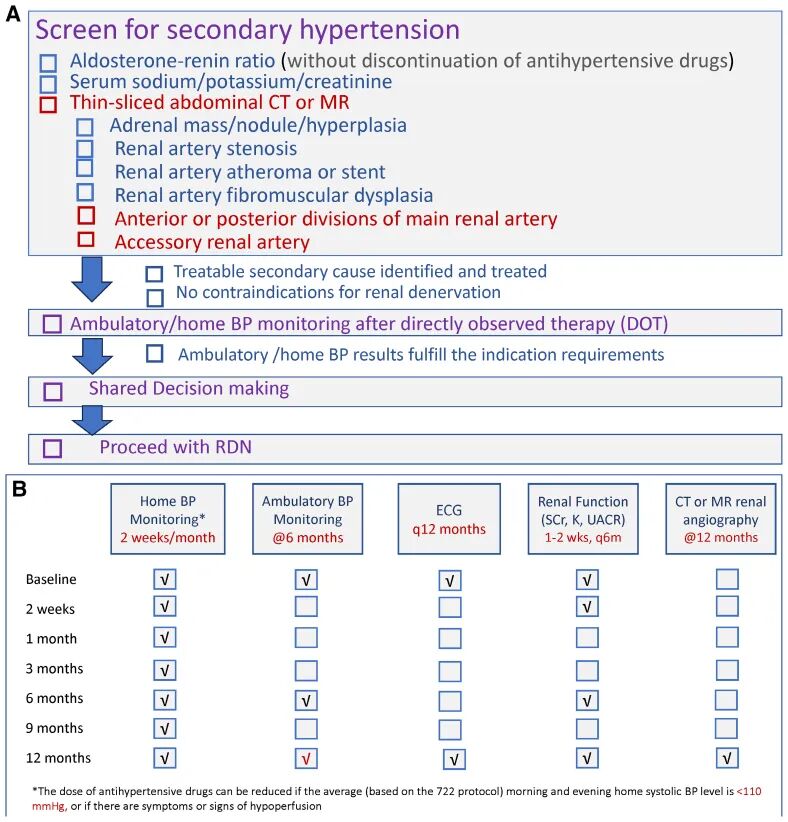 2) 强调RDN只能作为除改善生活方式和药物治疗之外的补充疗法而非替代治疗方法,同时需要排除继发性高血压后开展。