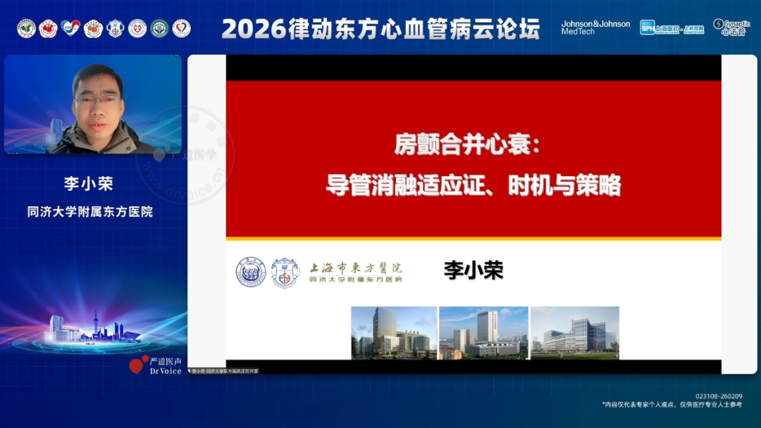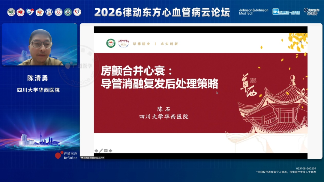 此讲座结束后,同济大学附属东方医院余金波教授在总结中高度评价了上述内容,并表示获益匪浅。针对临床关注的大左房、左房功能不佳等复杂病例,深入探讨了肺静脉隔离以外的进阶消融策略,包括BOX消融、后壁线、马歇尔韧带消融等个体化方案,为提升复杂房颤消融成功率与临床疗效提供了重要实践参考。四川大学附属华西医院蒲小波教授与同济大学附属东方医院谢欣博士围绕房颤合并心衰的临床诊疗展开深入分享。两位专家重点区分了阵发性房颤伴心室问题与无症状房颤进展为心衰两类患者的临床特点与预后差异,明确指南推荐对有症状患者尽早行导管消融,强调无症状患者若延误治疗将显著增加手术难度与不良预后风险。同时系统梳理围手术期管理及长期随访要点,为临床精准分层、优化治疗策略提供了科学依据与实践指导。