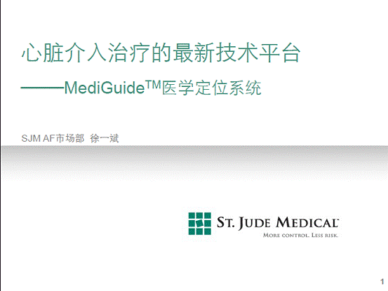 心脏介入治疗的最新技术平台 ——MediGuideTM医学定位系统