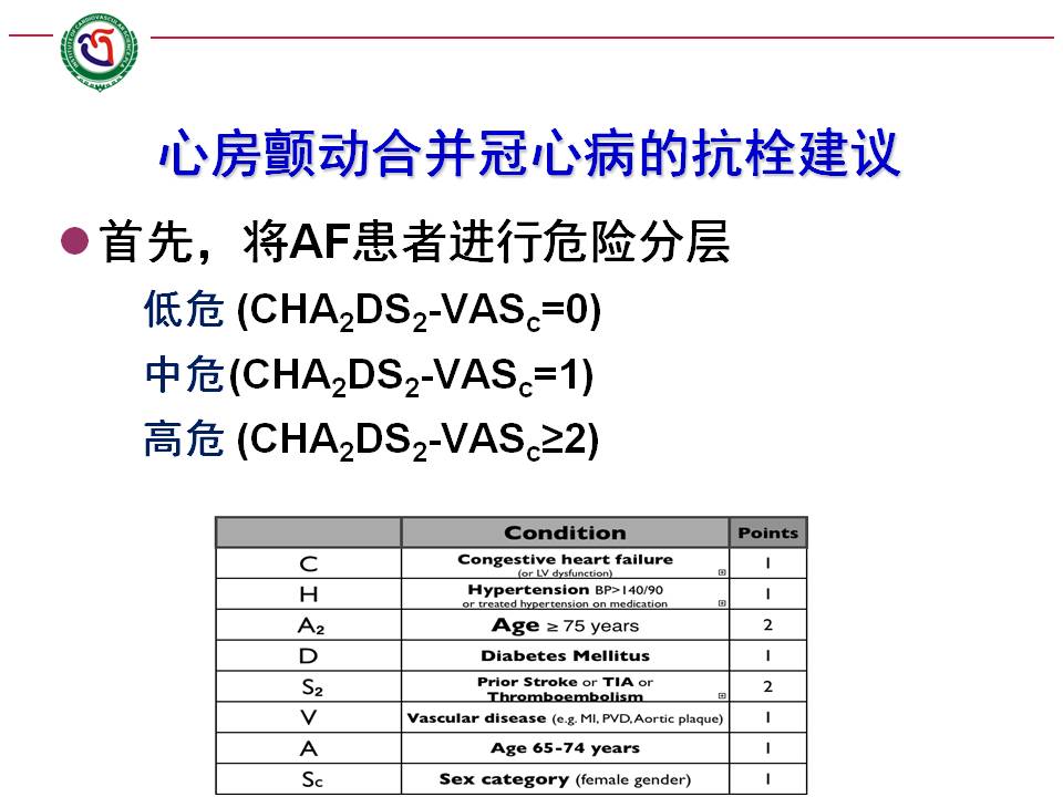 心房颤动合并冠心病患者的抗栓建议