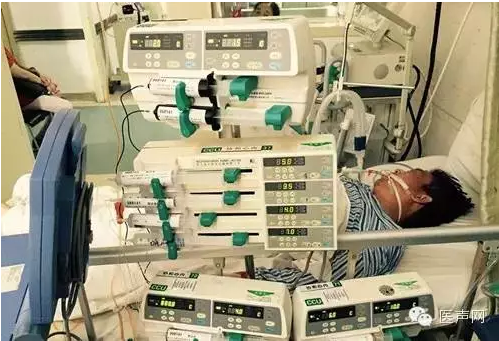 到达协和医院后,急诊科立即对霍先生进行气管插管,有创呼吸机辅助呼吸等抢救。经过多次心外按压、电除颤等抢救过程,最终,霍先生心律转复,但血压仍低,依赖大剂量升压药物,才将血压勉强维持在接近临界水平。同时患者没有自主呼吸,完全依赖呼吸机机械通气。