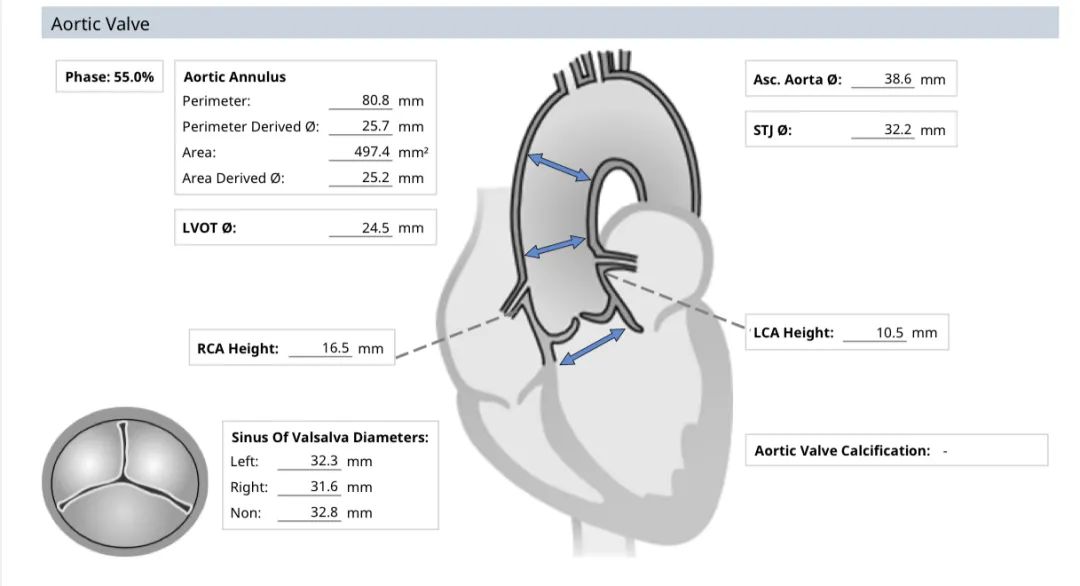 患者71岁,男性,10年前被诊断出“冠状动脉粥样硬化症”,有高血压和糖尿病病史,均未规律服用药物,10天前出现心悸、胸闷。就前往珠海市人民医院心内科住院治疗,心脏彩超提示主动脉瓣重度狭窄并轻度关闭不全,经过CT评估分析,姜小飞主任团队与患者商议后决定为该患者行经导管主动脉瓣置换术(TAVR)。