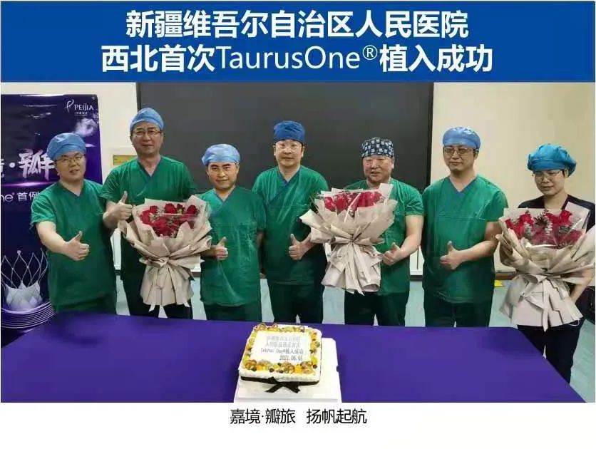 2021年6月5日,新疆维吾尔自治区人民医院杨毅宁教授团队成功完成了西北首次TaurusOne®经导管主动脉瓣膜系统植入,当日手术在华西医院陈茂、冯沅两位专家的专程指导和见证下,成功为两位患者进行了经导管主动脉瓣置换,其中一例为PCI+冠脉保护下TAVR的高难度病例,另一例为典型Type1二叶瓣病例,两例患者植入后瓣膜工作稳定,未出现冠脉阻挡,仅一例微量瓣周漏,两例患者血流动力学均得到有效改善,将为患者带来更长的生存期获益!