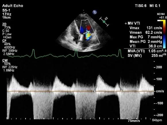 二尖瓣瓣口面积及平均跨瓣压差评估(5mmHg)