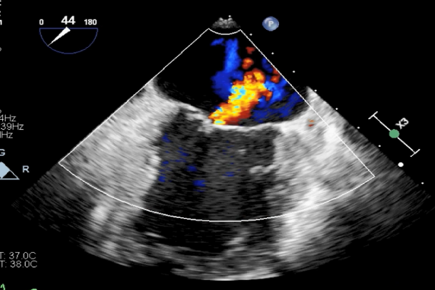 TEE短轴脱垂区域显示(color,血流来源于P2、P3区)