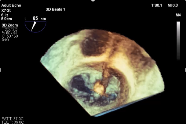 三维超声心动图显示第二枚XTR夹子释放