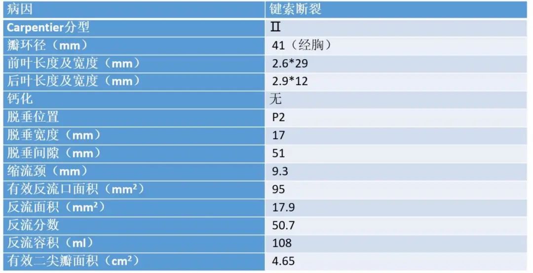 患者为71岁男性,主因“间断胸闷5年”入院,患者5年前开始出现活动后胸闷、气短,并伴有双下肢水肿,服用利尿药物治疗,症状稍好转,但仍反复发作,2016-9-5到行超声心动图提示LA 50mm,LV 65mm,RV 23mm,LVEF 65%, 二尖瓣后叶脱垂,瓣叶增厚,P2区瓣叶收缩期脱向左房,致对合不拢,三尖瓣少中量返流,收缩期前向流速最大为4.3m/s, 估测肺动脉收缩压为79mmHg,主动脉瓣二瓣化畸形,近2年规律服用诺欣妥、螺内酯、比索洛尔、托拉塞米、匹伐他汀等药物,2019-1-12到经食道超声提示:全心扩大,以左房为主,二尖瓣后叶脱垂,P2、P3区收缩期脱向左房,脱垂部分瓣叶长16mm,瓣环直径40mm,主动脉瓣增厚,黏连,开放呈左右二叶,有效瓣口面积1.4cm²,2020-12-2,行经胸超声心动图提示LA 53mm,LV 70mm,LVEF 60%,左室舒张末期容积255ml,RV 25mm,TAPSE: 正常,全心扩大,以左房为著,室壁厚度正常,运动幅度正常,二尖瓣后叶增厚,P2和部分P3区瓣膜收缩期脱向左房,脱垂瓣叶宽约17mm,脱垂间隙约12mm,瓣尖可见甩动腱索残端,瓣关闭对合不拢。