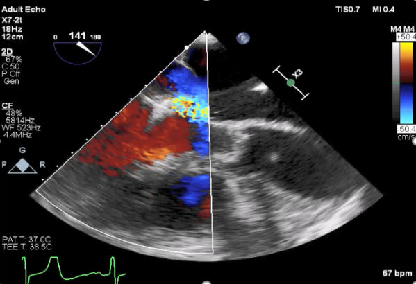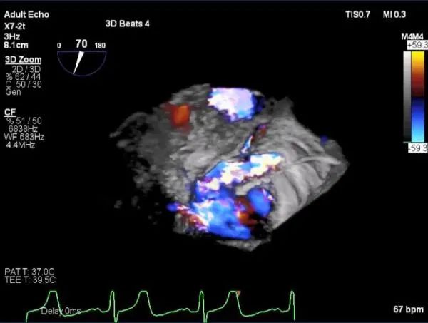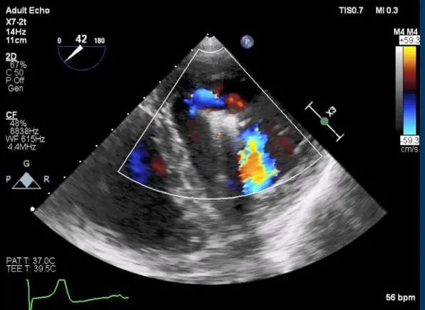 麻醉状态下TEE显示中大量返流MR: