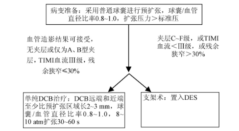 2016年中国专家共识也对单纯药物球囊治疗的预处理条件进行了要求:残余狭窄≤30%;TIMI血流3级;无C型及以上夹层。