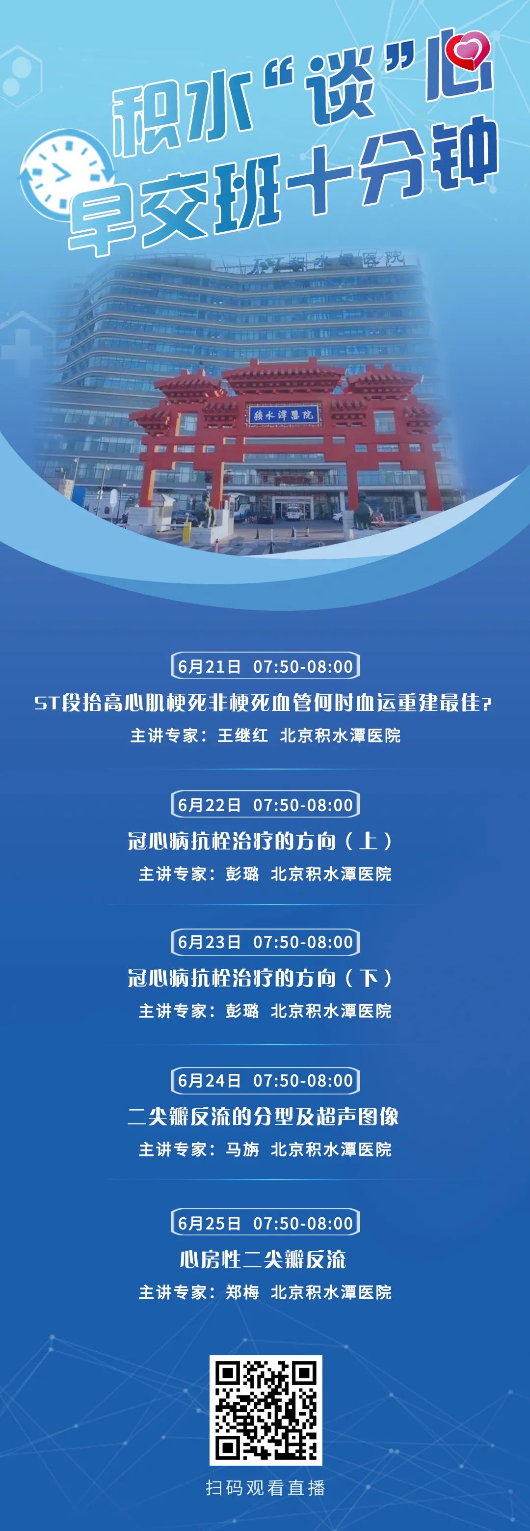 北京积水潭医院心内科启动科室发展新模式,每个工作日07:50-08:00,早交班十分钟,传递心血管的新技术,新药物,新观念,新研究,新进展,从理论到实践,与时代共进。