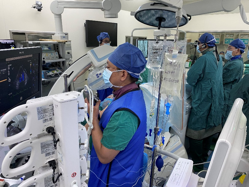 尚小珂教授、陈澍教授、钟禹成教授进行导管操作
