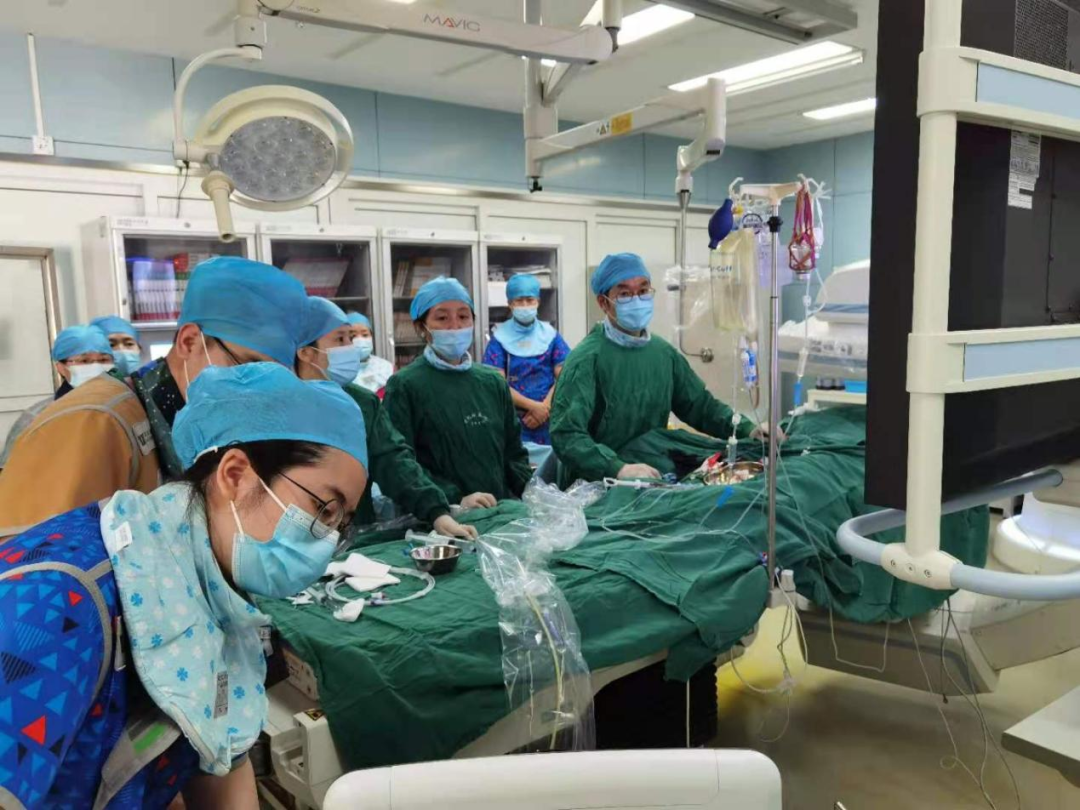 2021年6月17日中午12:30,88岁高龄的患者在局麻下,经心腔内超声(ICE)引导行左心耳封堵。术程顺利。当手术结束后,心内科导管室内所有医护人员都不约而同地为彭建军主任精彩而成功的手术鼓起掌来。