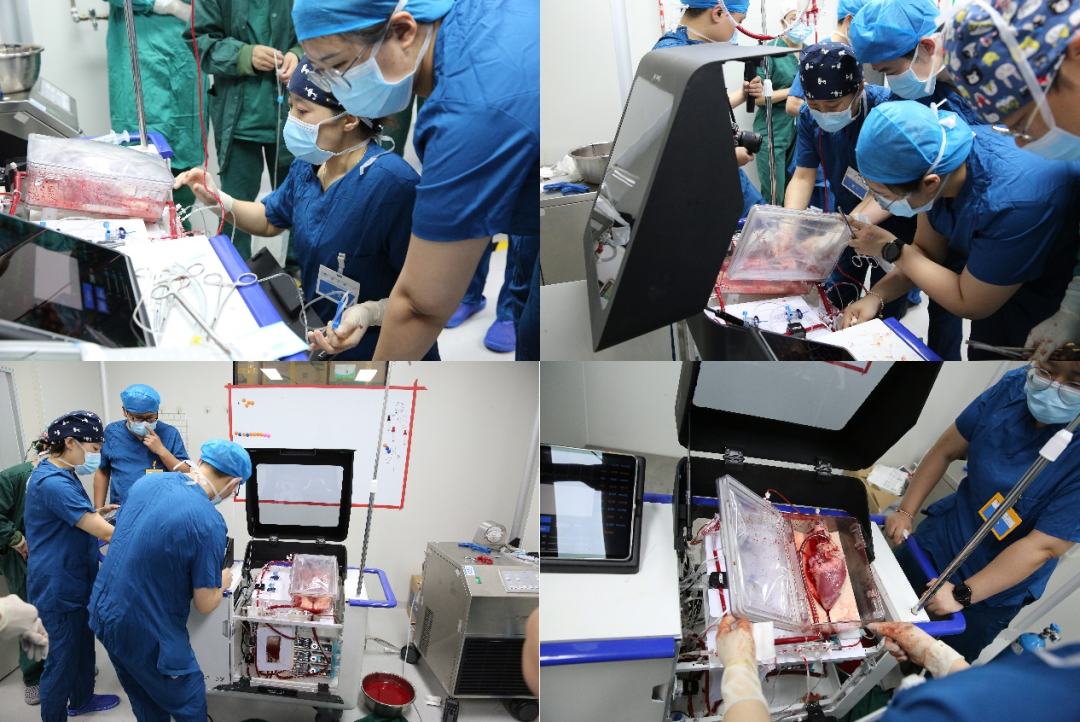 武汉协和医院心血管外科李平教授和心擎医疗的工程师团队共同努力协作,将一只绵羊的心脏停跳、修心后,与温血转运设备连接并成功通过自体血液灌注实现体外复跳。