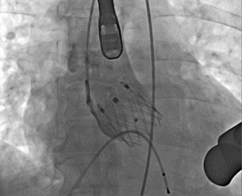 手术采用经心尖入路,对患者进行全麻后,在左侧心尖处做3-4cm微创手术切口,在DSA及超声引导下手术顺利完成。从导入器械到完成瓣膜置入,仅耗时约10分钟。术后即刻主动脉瓣反流程度由术前大量反流转为消失,患者于导管室拔除气管插管,次日由ICU转入普通病房。