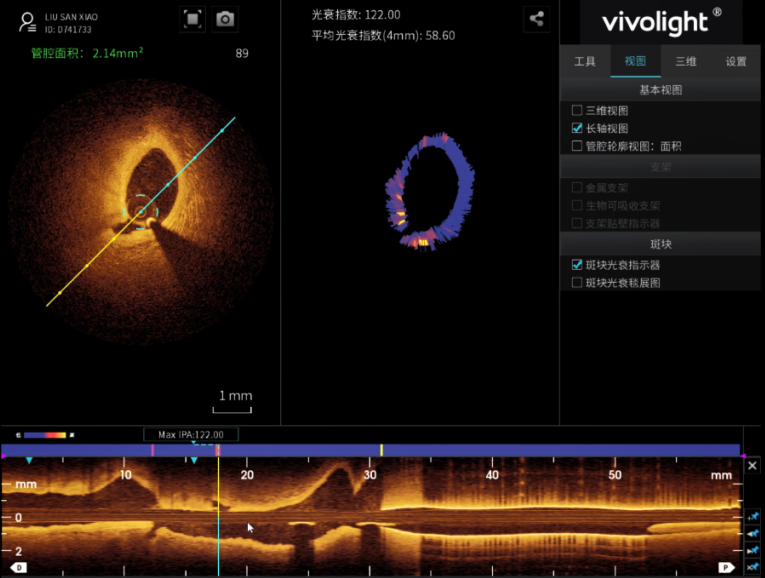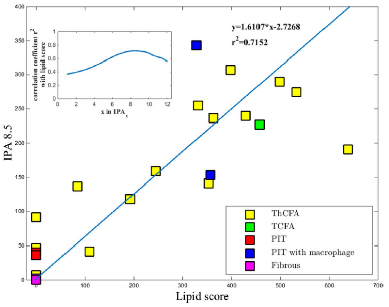 斑块光衰指数(IPA,Index of Plaque Attenuation)是近年来诞生的一种基于OCT的全新技术:使用传统OCT成像导管,通过一次OCT回拉扫描即可自动完成斑块稳定性的综合评估。IPA技术最早由荷兰鹿特丹伊拉斯姆斯大学医学中心( Erasmus MC )Gijs van Soest教授发明并开展了相关研究工作,在体外试验中首次证实了IPA与人工脂质评分的相关性;在临床研究中证明了IPA鉴别TCFA的能力优于NIRS-IVUS。