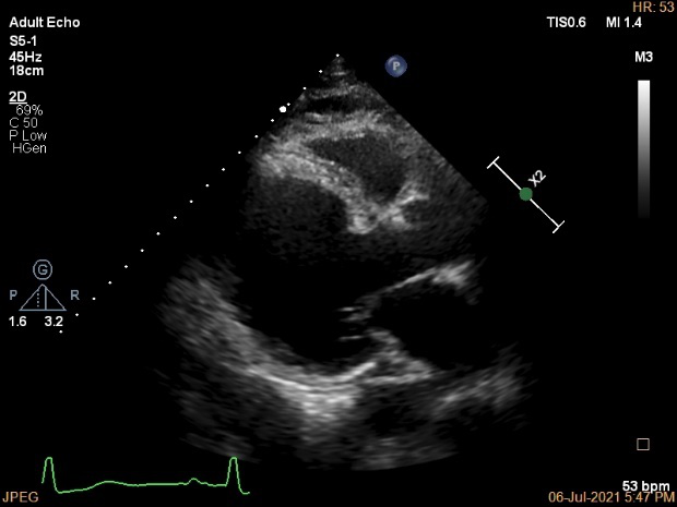 当地行超声提示:“二尖瓣中-重度关闭不全,射血分数减低”,予药物治疗,上述胸闷、心悸、喘憋症状仍间断出现。10月前因胸痛不缓解,当地医院诊断为“急性心肌梗死”,行球囊扩张术,术后活动仍存在胸闷、气促症状。6月前余当地医院查超声心动:LVEDD74mm,LVEF 31%,二尖瓣重度反流。
