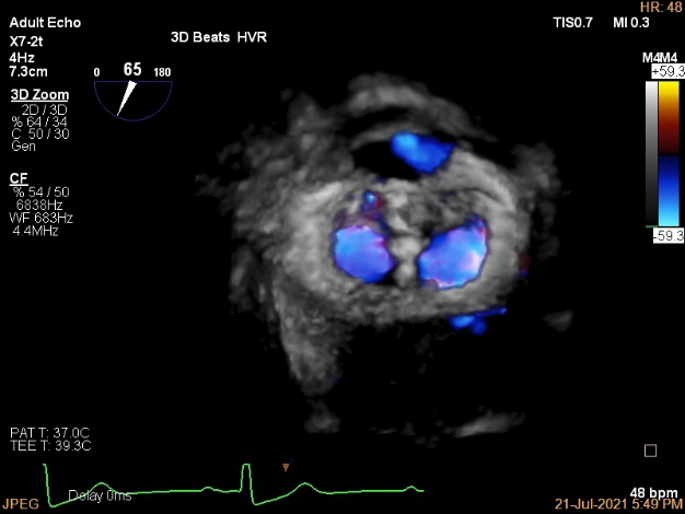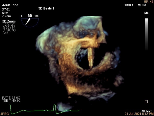 3D视图下观察二尖瓣双孔形态
