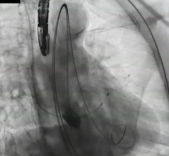 ▪ 横位心,考虑瓣口开放无受限,输送系统有跨瓣困难小;主动脉弓夹角锐利,有输送器过弓困难可能,必要时使用双超硬导丝策略或SNARE辅助过弓。