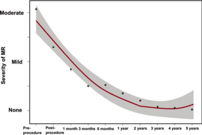 图2 合并中/重度MR患者TAVR术后MR变化趋势