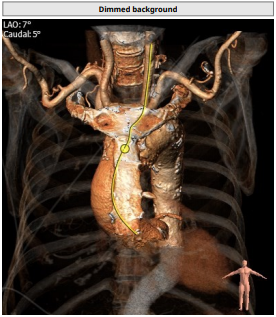 本次的病例解剖上来说是比较大的,所以术者很巧妙的选择了经颈动脉。一方面是因为我们评估患者的腹主动脉瘤,上下的瘤颈不够,不适合行腔内治疗,所以不考虑一站式手术,那么就只能绕行;另一方面,利用颈动脉距离短,控制稳的优势,大胆尝试在大结构的纯反流患者中行TAVR治疗,最后效果完美。
