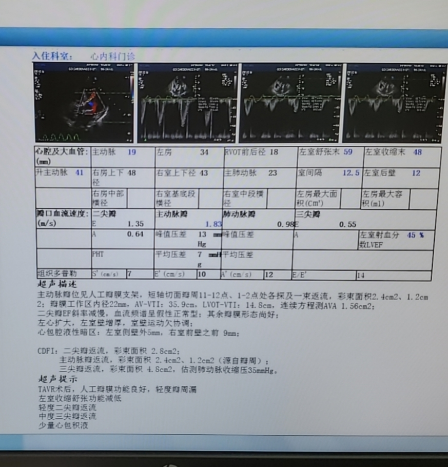 瓣膜功能良好,患者反流消失,颈动脉阻断时间12分钟,患者术后顺利苏醒,无脑血管并发症,一周后顺利出院。