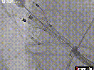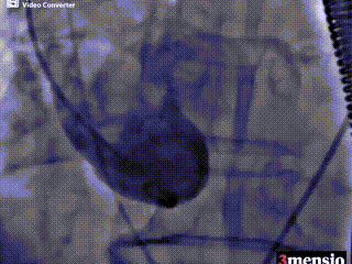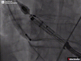 患者为71岁男性,因“活动后胸闷乏力6个月,加重1月余”入院。查体:血压146/54mmHg,心率81次/分,心律齐,于R2可闻及中度哈气样舒张期杂音。超声心动图示:主动脉重度返流;左室壁节段性运动不良;左心扩大、室间隔增厚,左室充盈异常。术前CT评估显示,LVOT周径24.9mm,面积443.3m²;瓣膜无钙化,主动脉瓣瓣环面积522.1m²。综合考虑LVOT较瓣环偏小,遂选用JS/TAVI 27 Ken-Valve人工瓣膜进行经心尖TAVI手术。