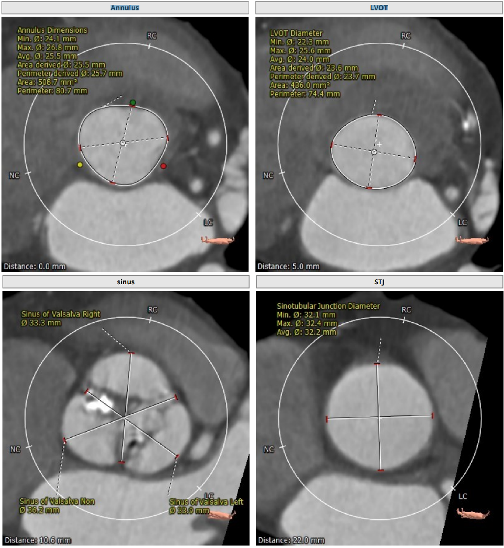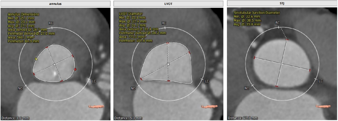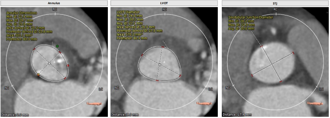 Annulus:23.5,初选26/29瓣膜。LVOT短径19.3mm,STJ高度足够,宽度适中。