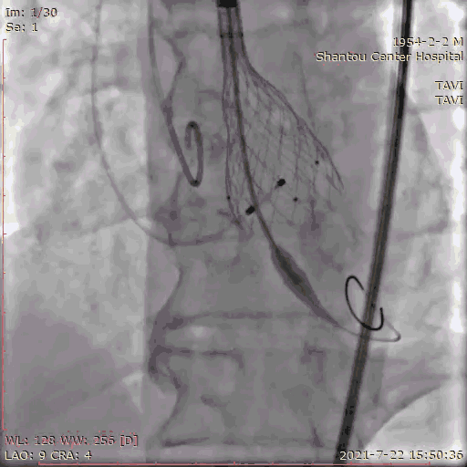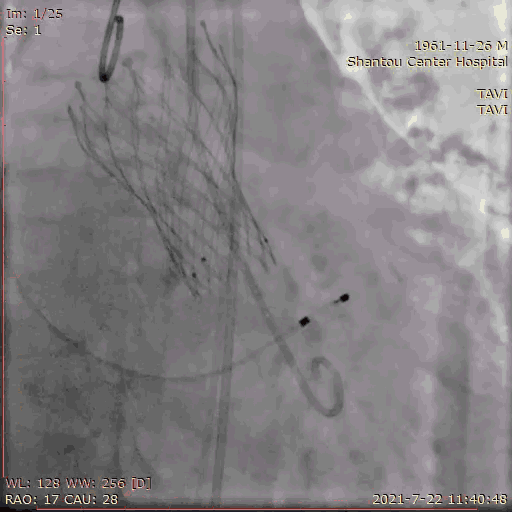 我院心脏瓣膜团队陈天博主任与广东省人民医院刘健教授团队对患者病变进行深入分析、反复讨论后,结合患者病情复杂等因素,决定使用VenusA-Plus®经导管人工主动脉瓣膜置换系统-可回收输送系统,选用L26型号的瓣膜经由右侧股动脉入路完成此次手术。