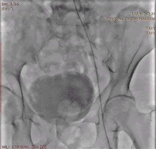撤出大鞘,主入路缝合,造影示入路血管。灌注良好。