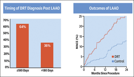 LAAO后的DRT与脑卒中和系统性栓塞事件相关。患者自身(高凝血症、心包积液、肾功能不全、持续性心房颤动)和手术操作因素(植入深度)与DRT发生相关,该预测模型有助于对LAAO患者进行DRT风险分层。