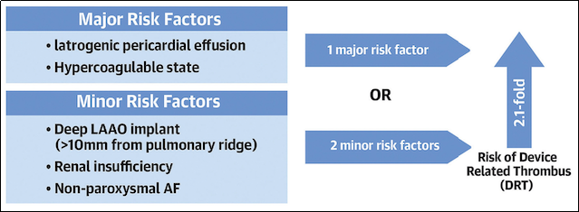 Simard T, Jung RG, Lehenbauer K, et al. Predictors of Device-Related Thrombus Following Percutaneous Left Atrial Appendage Occlusion. J Am Coll Cardiol. 2021 Jul 27;78(4):297-313. doi: 10.1016/j.jacc.2021.04.098. PMID: 34294267.