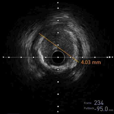 IVUS测得LAD近端参考直径(media-media) = 4.03mm