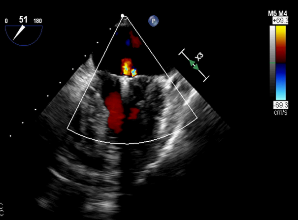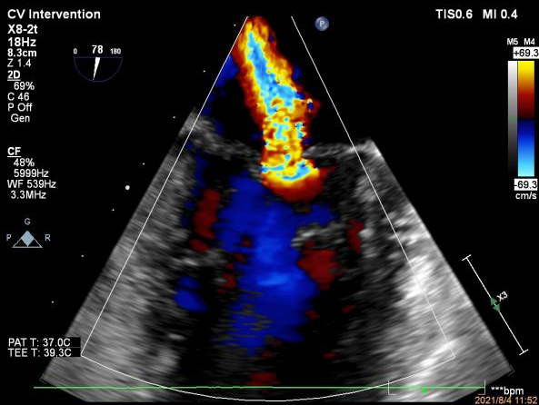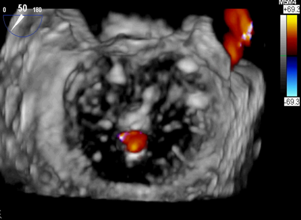 图2:植入一枚瓣膜夹之后二尖瓣反流明显减轻