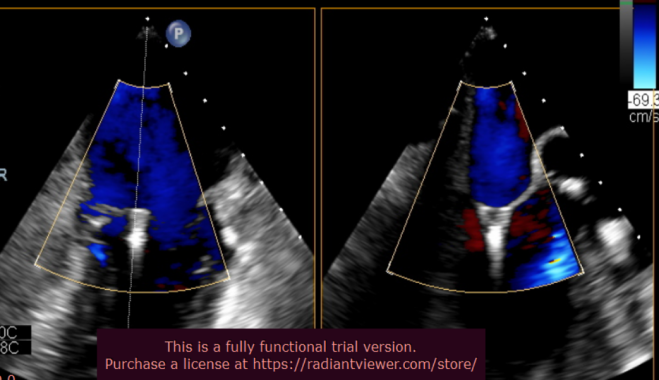 图1:术前TEE提示二尖瓣重度反流,反流位置位于A2/P2区